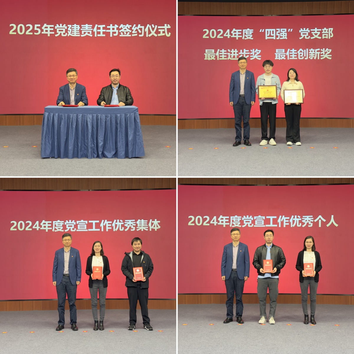 會議宣讀了黨支部換屆選舉的批復并開展集體談話,舉行了2025年度黨建工作責任書簽約儀式,新任黨務干部代表分別結合新的工作定位進行表態發言。同時,對部分優秀黨支部優秀代表進行了表彰,其中腫瘤與微環境第二黨支部獲最佳創新獎、研究生新生黨支部獲最佳進步獎,團委和信息中心第一黨支部及相關個人分獲黨宣工作優秀集體和個人。