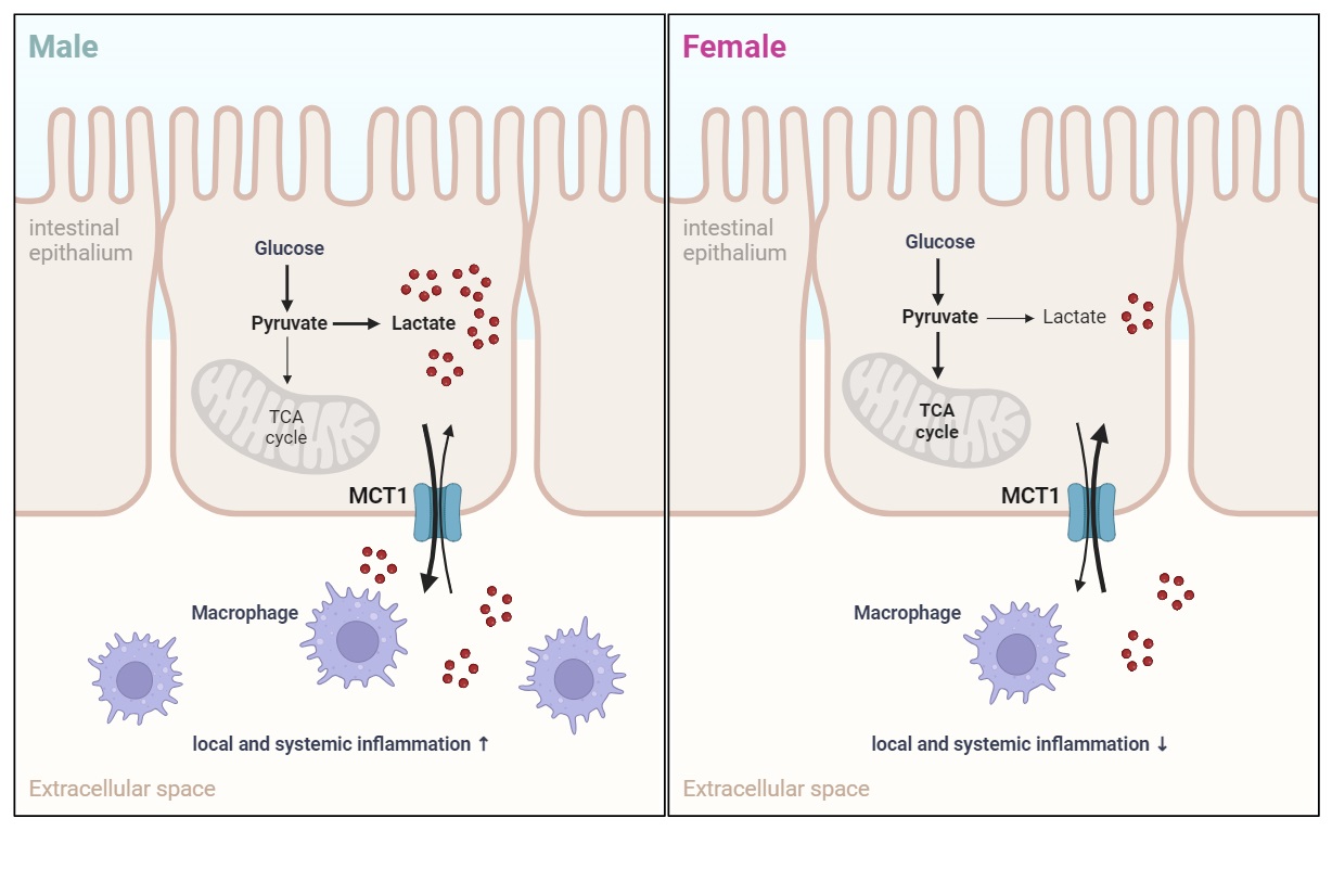 圖注:腸道MCT1以性別二態性的方式影響代謝穩態