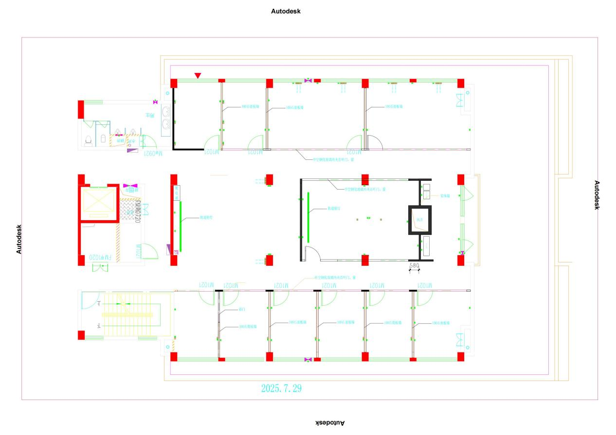 拆除原有細胞房和小型實驗室,相應吊頂和地板修復,垃圾外運等;東西側墻體采用中空玻璃夾百葉、南北側墻體采用輕鋼龍骨雙面石膏板;消防系統按照國家有關規定位移、增補;強電(含照明、插座、電路及配電箱)、弱電(網絡、電話)按照使用單位提供的說明和需求安裝;原墻、窗、門、踢腳線等進行修補;部分空調位移和新增。