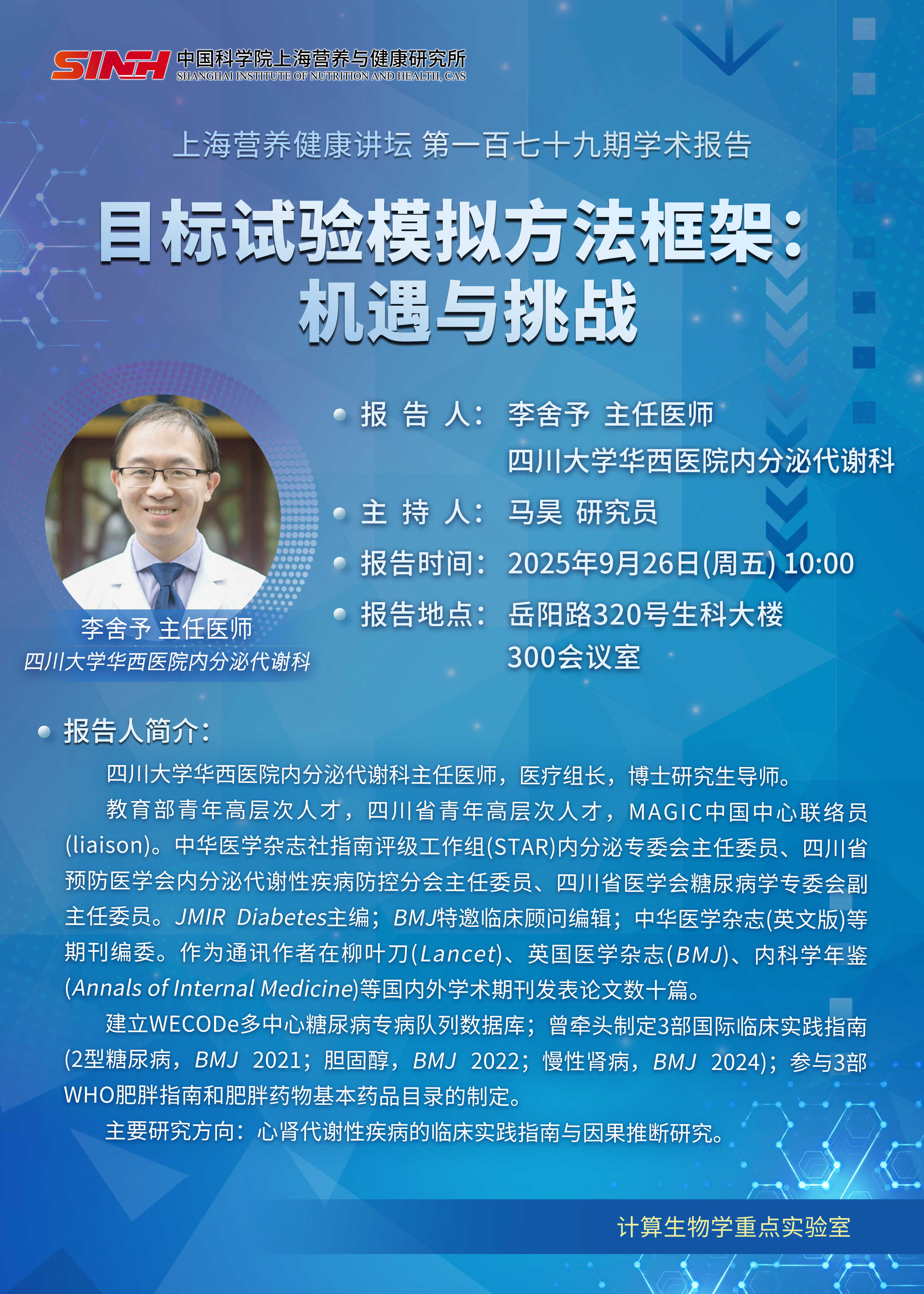 9月26日|目標試驗模擬方法框架:機遇與挑戰-上海營養健康講壇