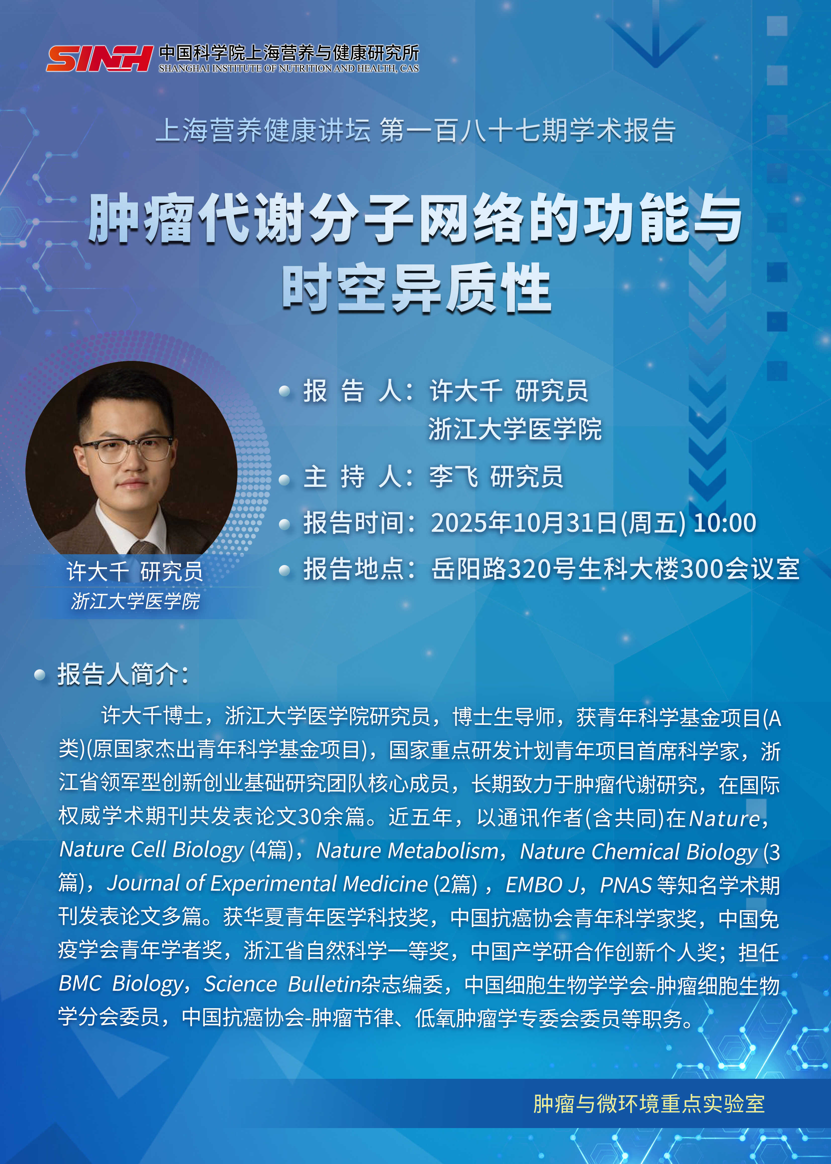 10月31日|腫瘤代謝分子網絡的功能與時空異質性-上海營養健康講壇