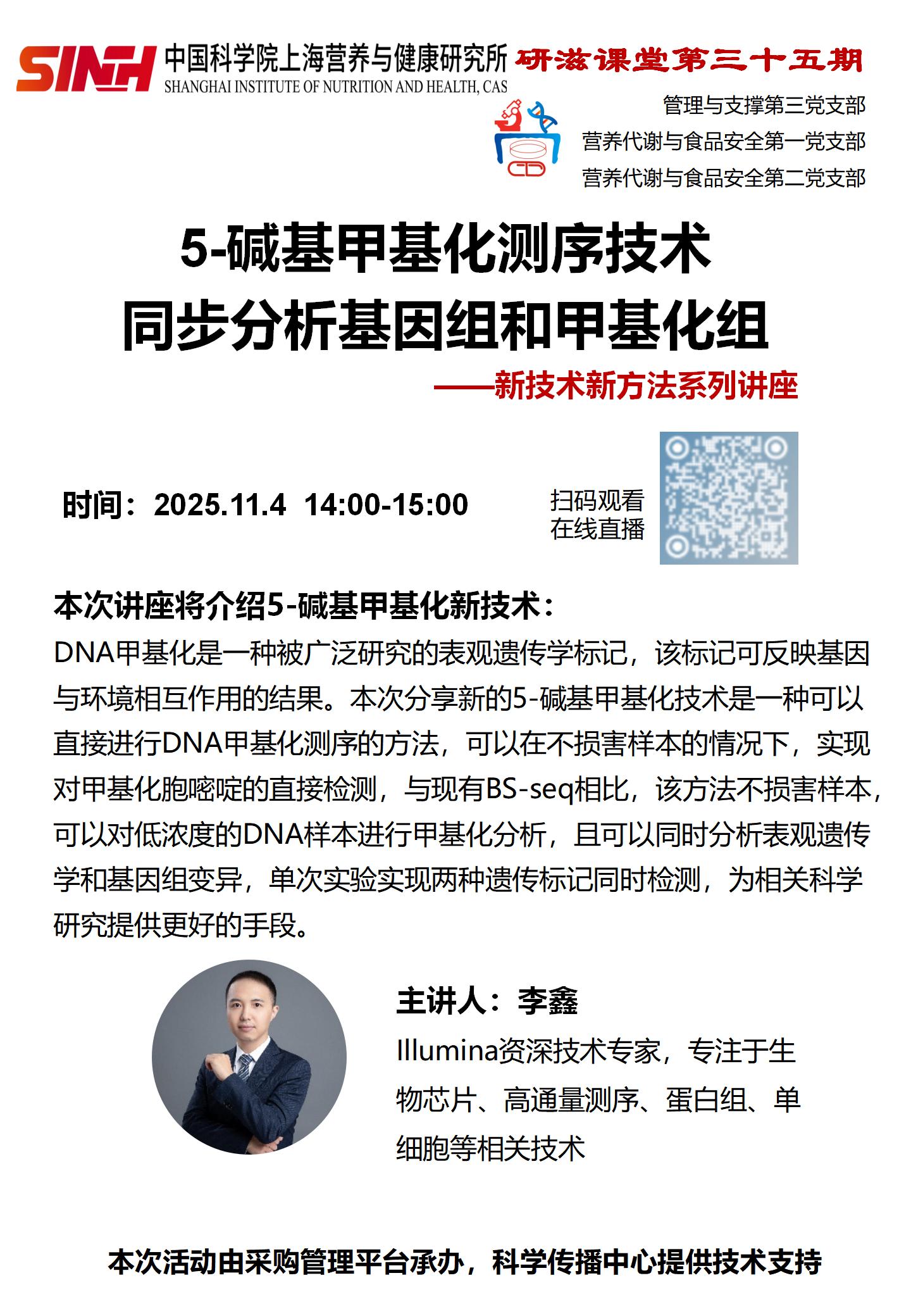 11月4日|5-堿基甲基化測序技術同步分析基因組和甲基化組-研滋課堂