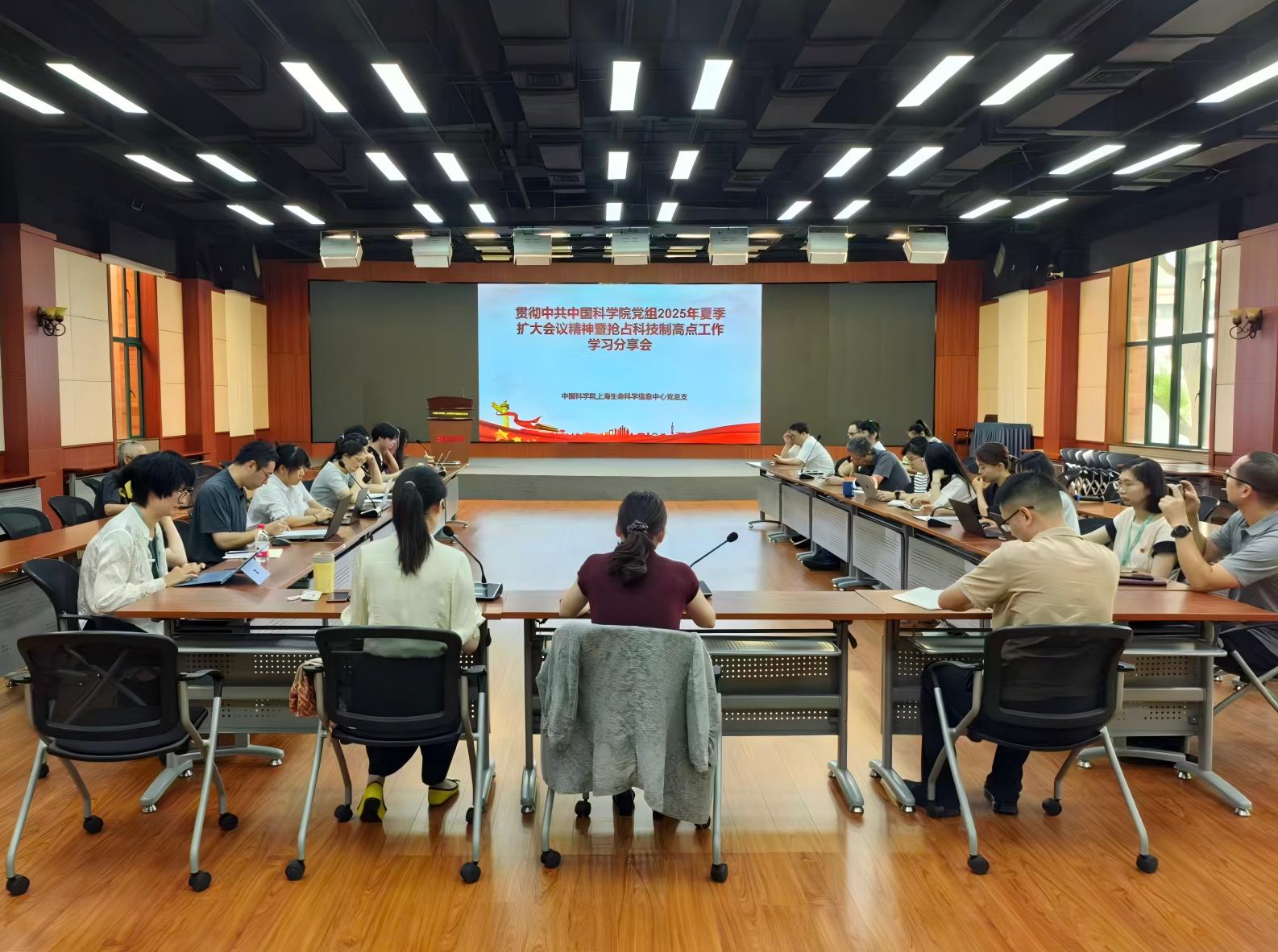 為深入學習貫徹中國科學院2025年夏季黨組擴大會議精神,切實推動會議部署轉化為具體工作實踐,9月26日上午,中國科學院上海營養與健康研究所信息中心黨總支在明德廳召開“貫徹院2025年夏季黨組擴大會議精神暨搶占科技制高點工作”專題學習分享會。信息中心黨總支書記熊燕,總支副書記、副主任陳大明及30余位黨員參加會議。會議由黨總支副書記、副主任沈東婧主持,信息中心第二黨支部承辦。