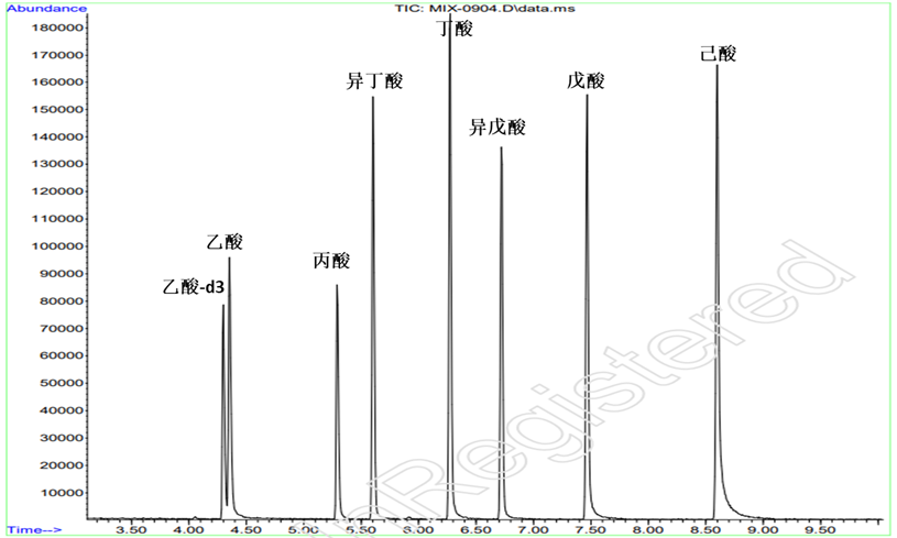 ????圖4. 七種短鏈脂肪酸標準品譜圖
