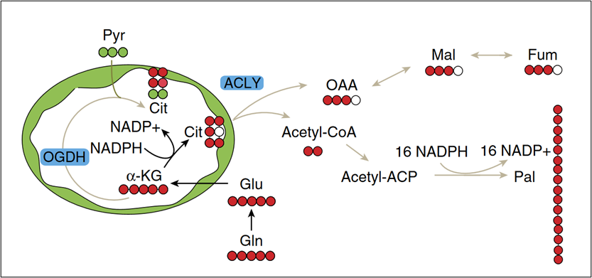 ????圖5. 13C-谷氨酰胺標記三羧酸代謝物和脂肪酸