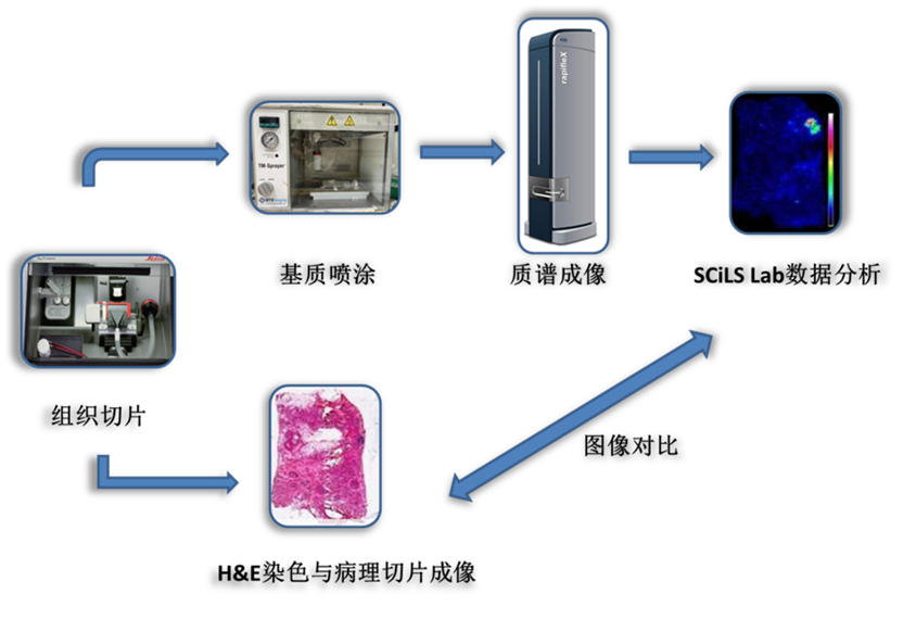 利用Bruker質譜成像rapifleX MALDI-TOF/TOF對生物樣本組織切片中內源性代謝物或外源性藥物等進行靶向檢測和非靶向分析,并用成像分析軟件SCiLS Lab對原始數據進行處理。